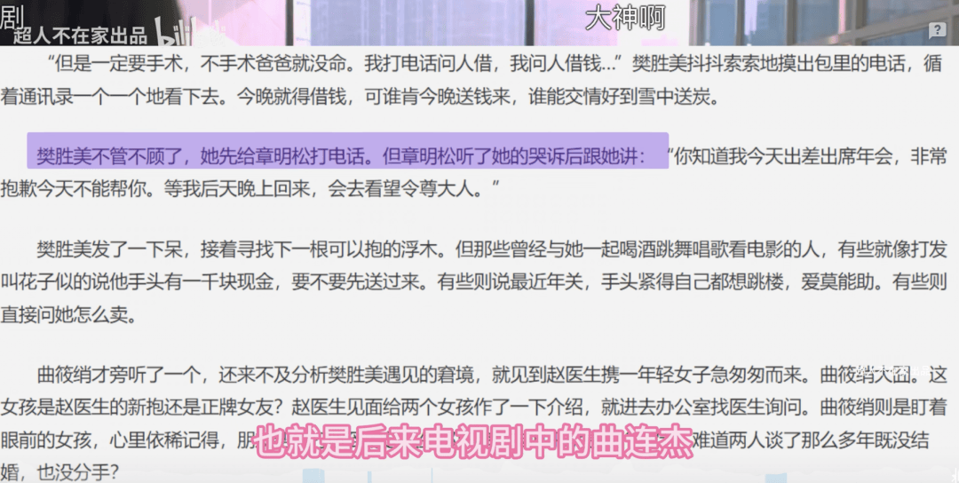 在原著中,出事之后,樊胜美第一个电话是打给张明松,也就是剧中的曲连杰。