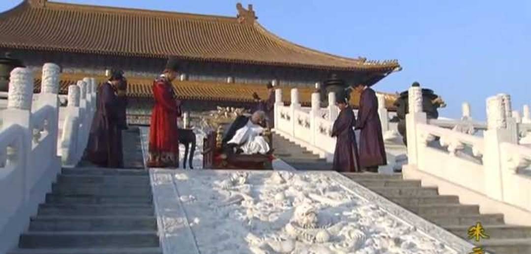 这部剧最让我魂牵梦萦的,是最后一集最后那十分钟。没有战争,没有朝会,没有阴谋诡计,甚至没有几句台词。垂垂老矣的朱元璋,躺在大殿前的椅子上晒太阳。夕阳的余晖给他镀上一层温暖的金边,他看起来就像一个普通的、怕冷的老人。