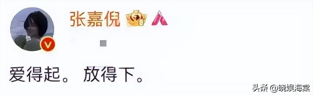 张嘉倪在社交平台只发了六个字:爱得起,放得下,就体面地结束了这段八年的婚姻。