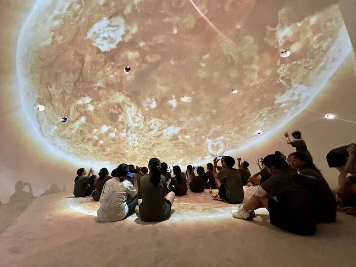 2024年9月,孩子们在位于西昌卫星发射中心附近的“北斗村”航天农文旅研学实践基地球幕影院中观影。(凉山州文旅投资发展集团供图)