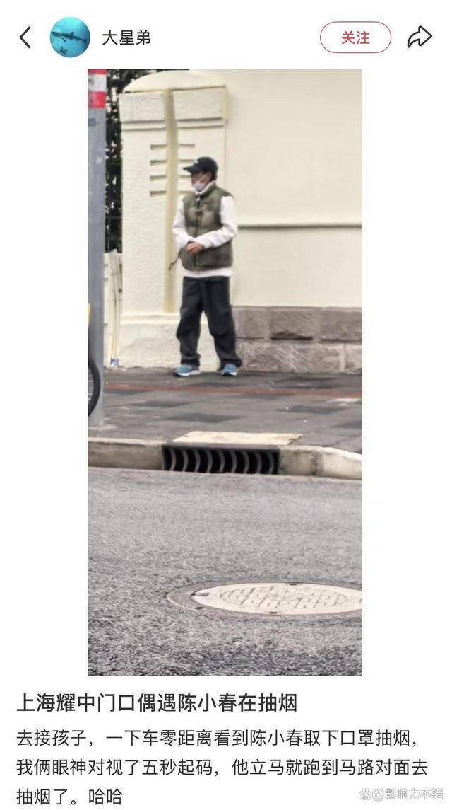 3月5日,一位网友在上海耀中国际学校门口接孩子时,偶然碰到了陈小春。自从他把事业的重心转向内地,全家搬到上海定居后,陈小春变得越来越接地气,这次被网友偶遇时,他完全没有明星架子,简直就像普通家长一样。根据网友的描述,那天陈小春正好没有工作,于是亲自去学校接自己的长子Jasper放学。网友刚下车,就近距离看到了他,陈小春戴着帽子,正准备摘下口罩抽烟,看得出他非常放松。两人对视的一刹那,陈小春迅速意识到自己被认了出来,毫不犹豫地转身跑到马路对面继续抽烟。这一举动,竟然被网友热议并迅速上了热搜。