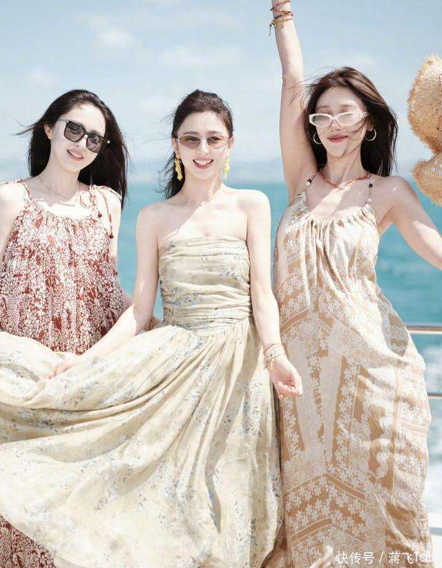 佟丽娅和好闺蜜董璇温宇,在海南过春节,三人有默契穿得像姐妹花