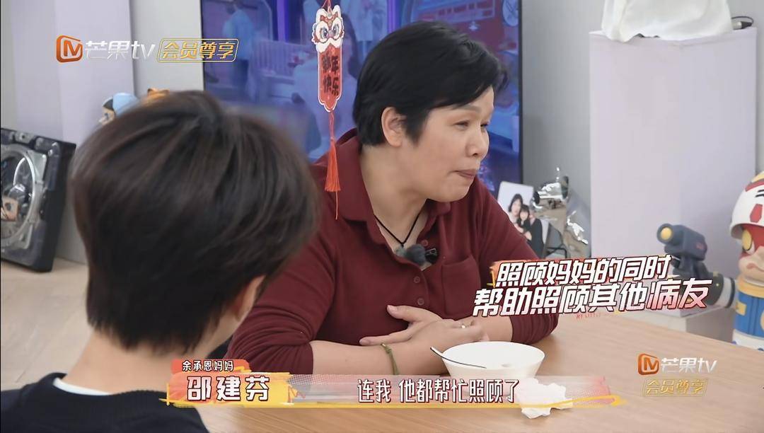 余承恩与家人的故事,也戳中了无数人的泪点。节目记录下他面对母亲开颅手术时的担当与沉稳:他与姐姐一起全程守在医院,细心陪伴、悉心照料,在紧张与等待中撑起整个家。即便在压力巨大的时刻,他依然不忘照顾临床病友,温柔体贴、举止有度,这份藏在细节里的善良、沉稳与孝心,让人们看到了年轻艺人最珍贵的品质,也让“陪伴”“责任”“亲情”这些词语变得格外有分量。