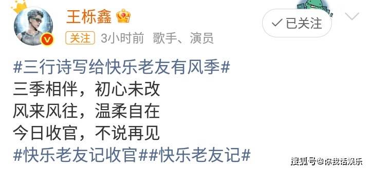 快乐老友记收官,王栎鑫苏醒陆虎张远王铮亮发文,感人至深(老友记快餐)