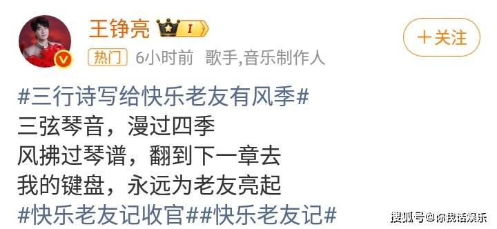 由此可见,陆虎参与此次综艺节目演出,有太多想说的话!这就是再就业男团艺人综艺情怀的表达!王铮亮发文:“我的键盘,永远为老友亮起”。这就是王铮亮的艺人情谊!