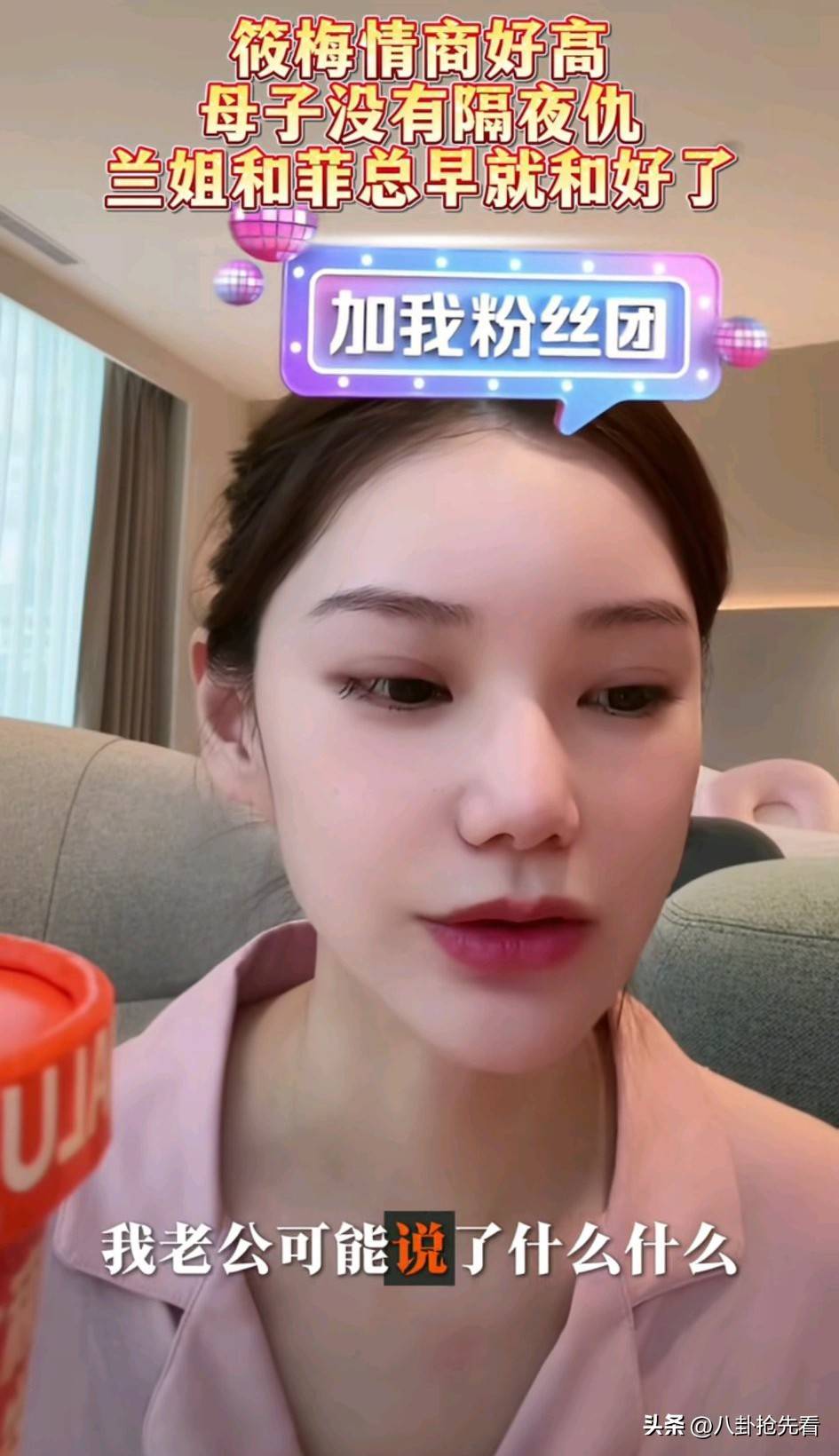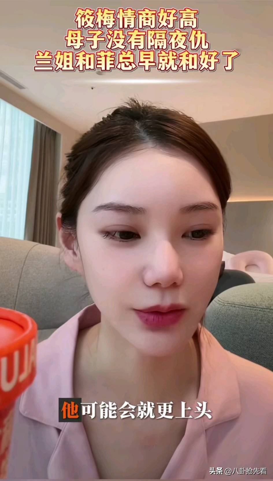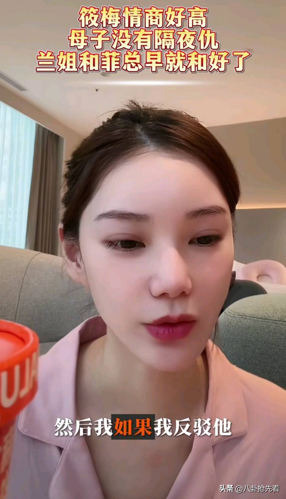 筱梅进一步说明,小菲当时只是情绪激动,母子之间没有隔夜仇。兰姐一直对她很好,这次只是母子间的事,她不方便插手。她补充道,当小菲回北京时,一定会当面向兰姐道歉。