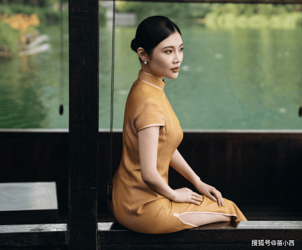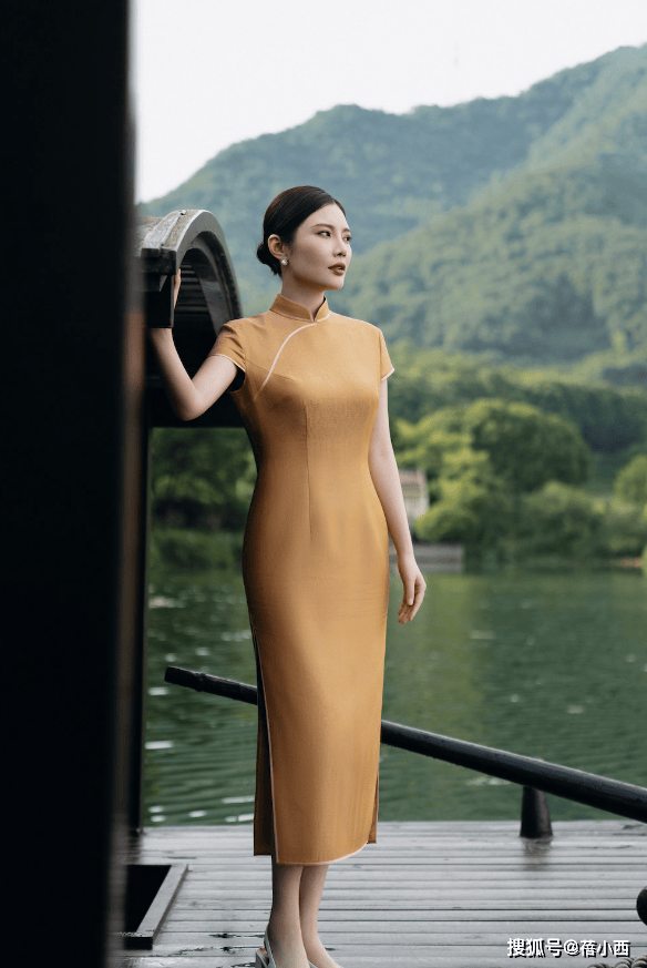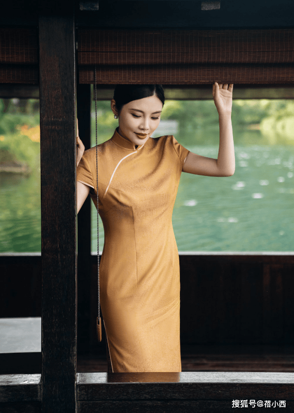 旗袍整体修身,特别是从胸腰处自然收窄,精准勾勒出了她的腰臀比,把饱满身材的曲线优势放大,没有紧绷的束缚感,显得舒展大气,完美诠释了“丰腴但不臃肿”的精髓。