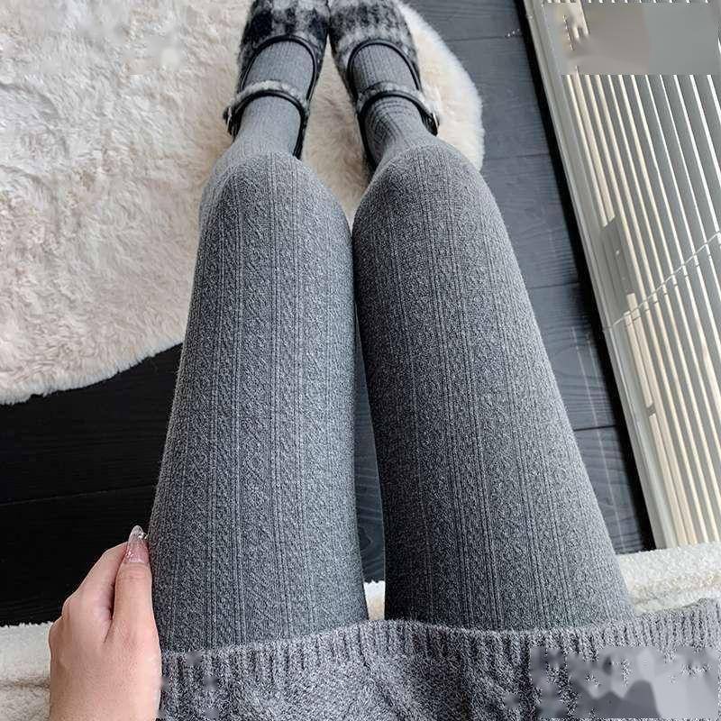 miu系烟灰色麻花纹打底裤袜走的是轻奢路线。采用意大利进口织机,花纹精致度远超普通产品。加绒加厚版本特别在关节处增加保暖层,久坐办公室也不会膝盖发凉。