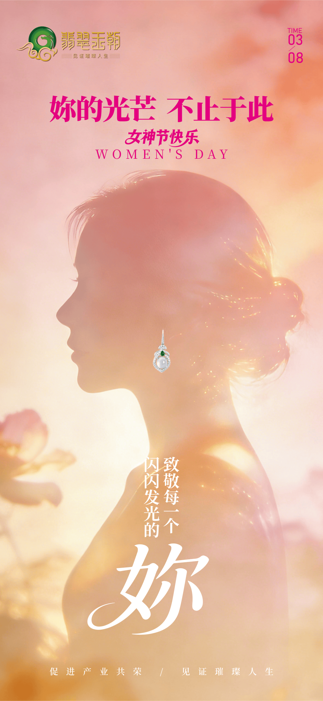 三月春光,万物生长。在这个属于女性的节日里,翡翠王朝向每一位在生活中闪耀光芒的妳致敬。