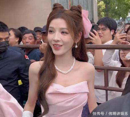 那天是3月5号,地点在杭州艺尚小镇的秀场。整个场地被打造为一个宛如梦境的全息蚕丝世界。90%透明度的纱幕上,蚕在吐丝,茧慢慢形成,宋锦的纹路一条条浮现,人站在其中,即便不用3D眼镜,也仿佛置身幻境。张予曦作为压轴出场,身穿的是官方称为花之系列的定制裙。远远看去,是一层层轻柔的粉色薄纱,走近才发现细密的银线和点缀的水晶,在灯光下微微闪动,她的裙摆随步伐轻盈飘动,仿佛花瓣在空气中绽放。面料是桑蚕丝混莫代尔,据说还邀请了钱小萍宋锦坊主理人吴芳,将宋锦的回纹、铜钱纹精细地织入裙料细节,真正做到了穿在身上的文化传承。但生图一出,讨论却走偏了。网友上传的近距离现场照显示,张予曦的粉底确实略厚,肤色不均的地方清晰可见,和台上光彩照人的状态形成鲜明对比。评论区里,不少人写道:每次看她的生图都觉得妆面脏脏的。了解她的人知道,她本就不是冷白皮,为了上镜显白,化妆师可能下手偏重。不过,也有人根本不在意这些瑕疵,只觉得她清冷的面庞配上柔美的裙装,反差感极强,像从古风画中走出来的花仙子,即便是生图,也掩不住那份仙气。