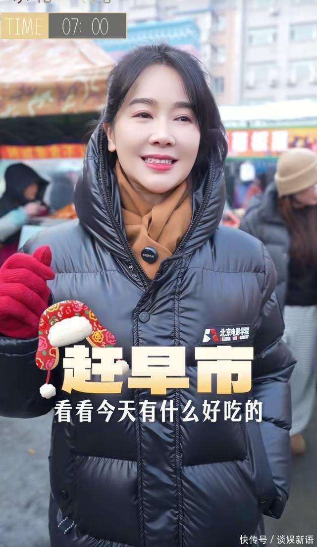 零下二十度的哈尔滨早市,在一个黑面包子似的女明星的光临下,突然成了社交媒体的焦点。这位明星便是左小青。记得那天我正裹着毯子,窝在暖气房里懒懒地刷着手机,突然被她的视频吸引了过去。与那些其他女明星在机场街拍上几乎要用我就是时尚的态度撩人的形象不同,左小青的状态截然不同。她穿着一件厚重的亮面黑色长羽绒服,蹲在一个冒着热气的油炸糕摊前,咬着一口豆包,嘴角上扬,眼睛几乎眯成了缝。那一刻,所有关于明星的光环、关于女神的包袱,都被热腾腾的烟火气消融得无影无踪。 这种要温度,不要风度的直接感,简直是对我们这些在冬天纠结穿秋裤还是保持形象的普通人的一种治愈。看看左小青,48岁了,曾是国家体操队员,公认的氧气女神,居然在东北的早市上如此自在地吃喝,这种由内而外散发出来的松弛感,比任何精修过的照片都要有说服力。