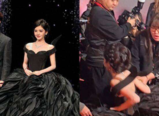先说红毯上的冰雪奇缘。章若楠那袭1.8米拖地黑裙,简直像是行走的移动冰柜!菲律宾设计师Mark Bumgarner打造的高定礼服,缝上了整整200颗施华洛世奇水晶,裙摆由30层轻盈网纱叠成,厚度堪比床垫。然而,她才迈出几步,就啪地一声摔在地上,膝盖狠狠撞到观众席边缘。网友们的评价可谓辣眼睛:这哪是走红毯?分明是真人版《天鹅湖》冰上事故现场!更令人哭笑不得的是她那夸张的猴屁股腮红,从苹果肌一路糊到耳根,粉丝忍不住吐槽:姐姐这是刚从花果山蹦出来的黑天鹅吗?要说当晚最心疼的瞬间,还得属娜扎在领奖台上的一摔。她脚踩恨天高,穿着拖地长裙,在下台阶时突然失去重心跌坐在地,手里的奖杯差点飞出去。现场镜头捕捉到,景甜和宋轶立刻冲上前搀扶,宋轶还贴心地给她披上毯子——零下三度的天气里,穿吊带,这一摔怕是连灵魂都冻得僵硬了!娜扎事后发微博报平安:放心哦~脚没事,可网友们的关注点全在她先检查奖杯是否完好上,纷纷调侃:这才是专业演员的职业素养,奖杯比人重要!