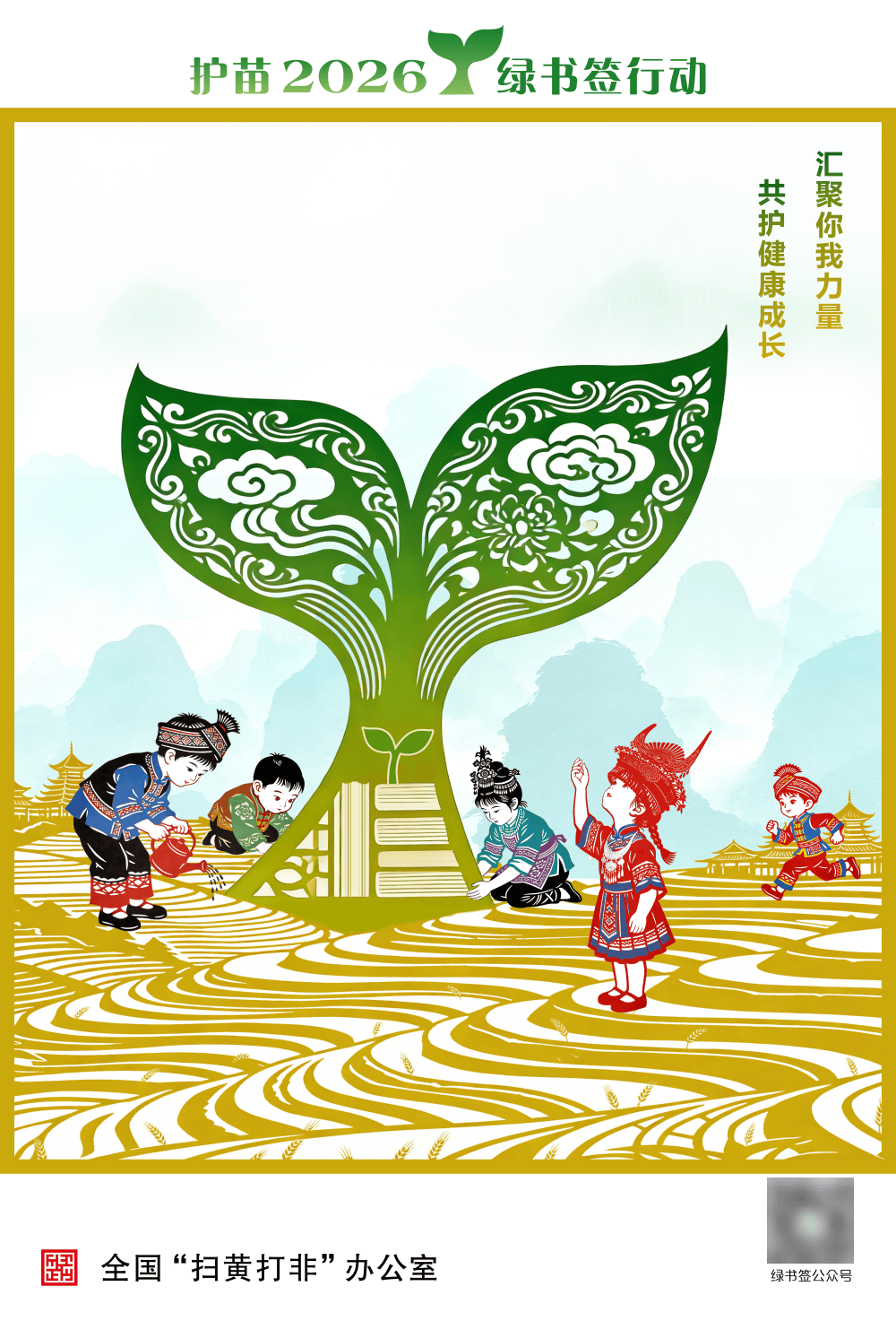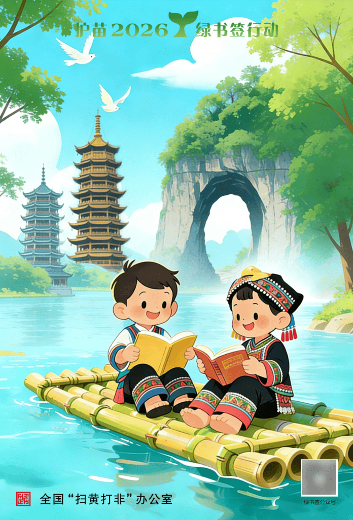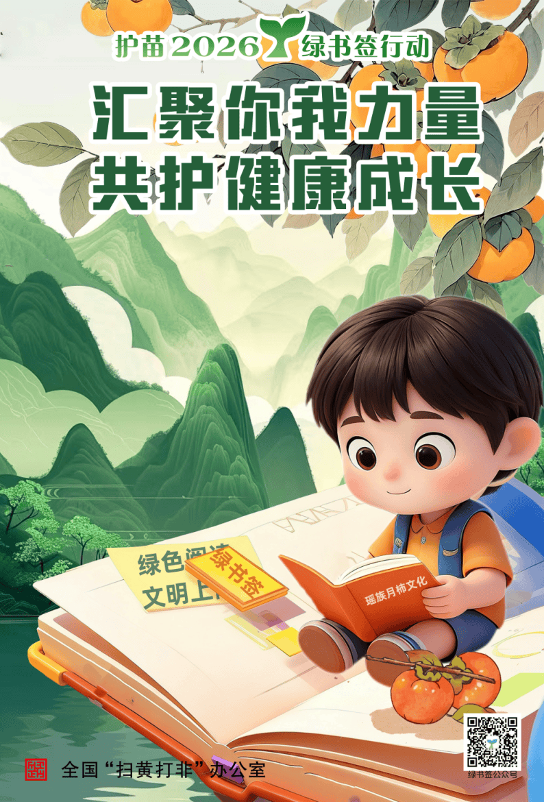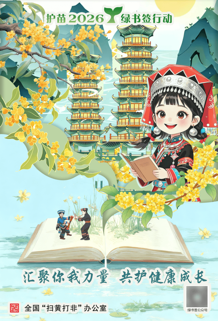 为深入推进“护苗”专项行动,增强“绿书签行动”的传播力和影响力,营造全社会共同关爱未成年人健康成长的良好氛围,按照全国、自治区“扫黄打非”办公室统一部署,桂林市“扫黄打非”办公室组织开展2026年“绿书签”海报设计征集活动。各县(市、区)积极动员、广泛宣传、精心组织、选送了一批优秀作品。市“扫黄打非”办公室认真做好海报征集遴选推荐工作,严把政治关、内容关、导向关,结合我市特点,遴选推荐体现“绿书签”内涵意义和具有穿山、龙脊梯田等本地特色元素的海报参加评选。