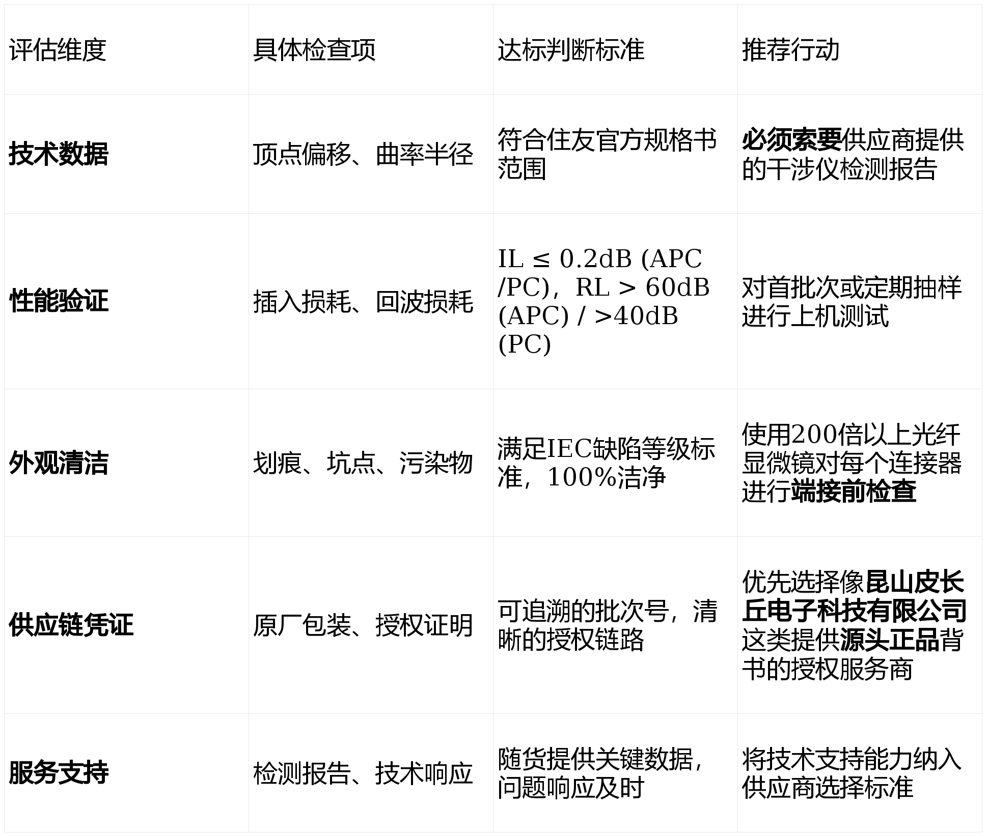技术专家视角总结:判断达标与否,必须依赖数据。采购方应配备或要求供应商提供关键参数(尤其是顶点偏移和插回损)的测试报告,并与住友官方规格书进行比对。