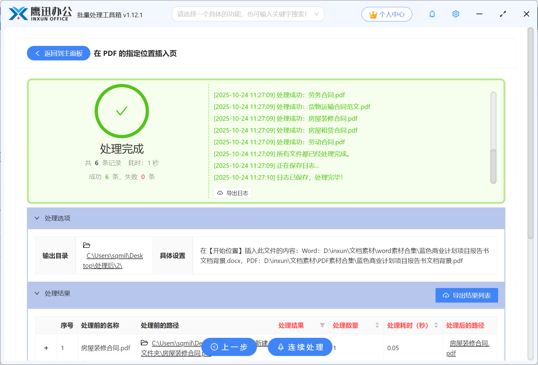 第五步、批量给多个PDF文件插入封面操作处理完成。