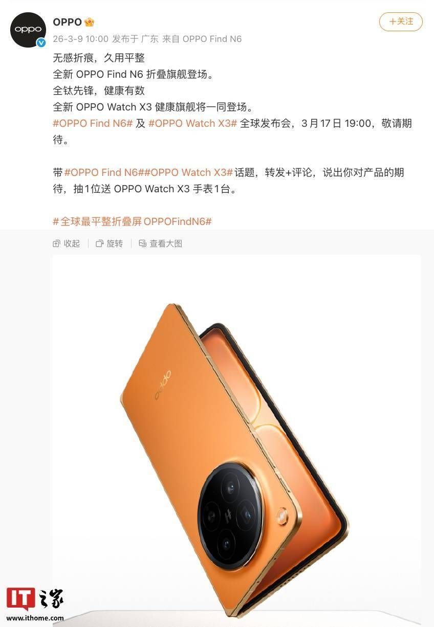 3月17日!OPPO Watch X3与Find N6大折叠携手登场(3月17日有什么特殊意义)