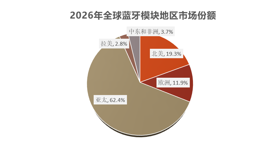 全球蓝牙模块市场区域分布根据问可汇(WENKH)深度研究分析,2026年全球蓝牙模块区域分布中,亚太地区占据62.4% 的市场份额,依托中国、韩国、日本等国家的电子制造与物联网产业基础,形成从芯片设计到模组生产的完整产业链配套,消费电子、智能家居与车载电子的旺盛需求驱动市场扩容,政策对数字经济与智能制造的支持进一步强化区域供应核心地位,头部企业全球化布局将亚太作为产能与研发枢纽,未来在工业物联网与车规级模块领域具备更大增长空间。