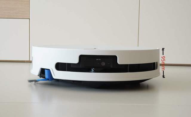 T90 PRO是内置摄像头的设计,顶部是纯平的,机身薄到只有95mm。这意味着平时擦它就跟擦桌子一样顺手,一抹就干净。更重要的是,那些以前扫地机钻不进去的低矮区域,它轻轻松松就进去了,彻底告别卫生死角。