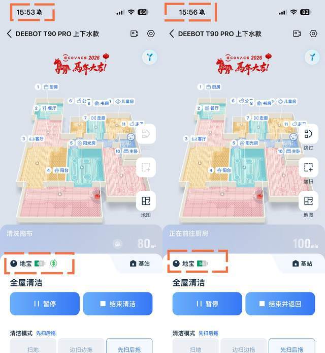 之所以效率如此之高,是因为T90 PRO搭载了自研的可快充软包动力电池及“瞬时超充”技术,可以边洗抹布边充电,做到一分钟都不浪费。为了检验它的超充效果,我特意又做了组实测对比: