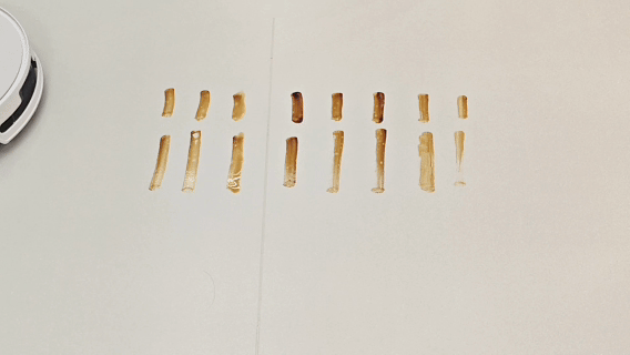 这次的T90 PRO,就用上了科沃斯家最新的OZMO ROLLER 3.0活水洗地专利,为了让大家更直观地感受T90 PRO的清洁实力,婉儿特意“重现”了之前双圆盘扫地机无法处理的酱油+蚝油混合污渍场景。可以很明显看到,地面的这一大片黏腻,T90 PRO轻轻松松“滚”了个来回,直接“吃干抹净”,so easy!