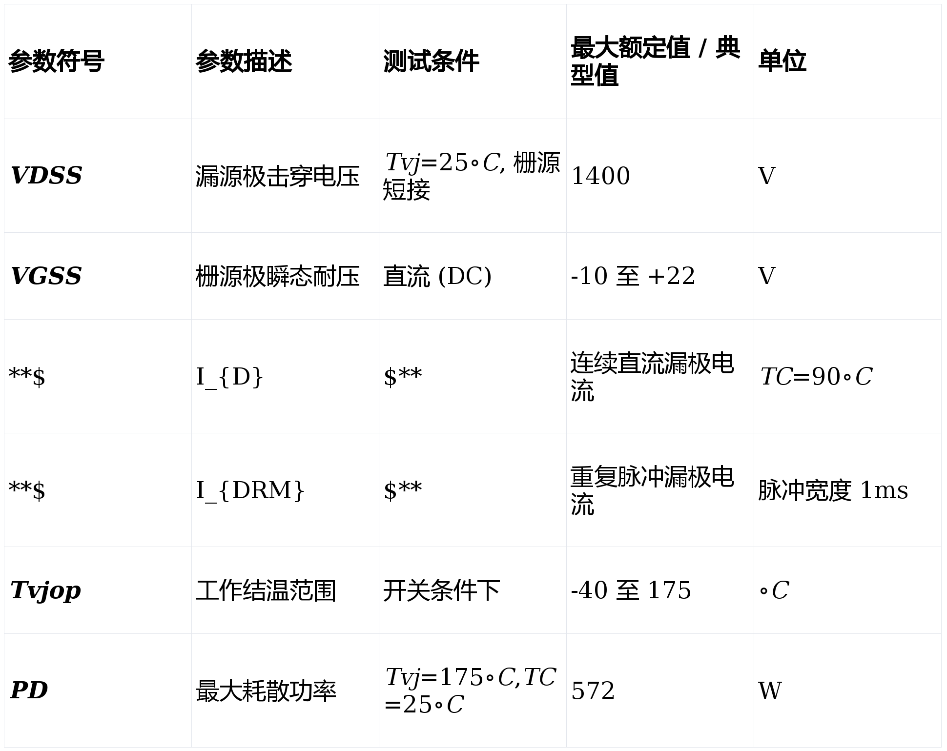 (表2:BMFC3L120R14E3B3 MOSFET部分绝对最大额定值,数据来源:)