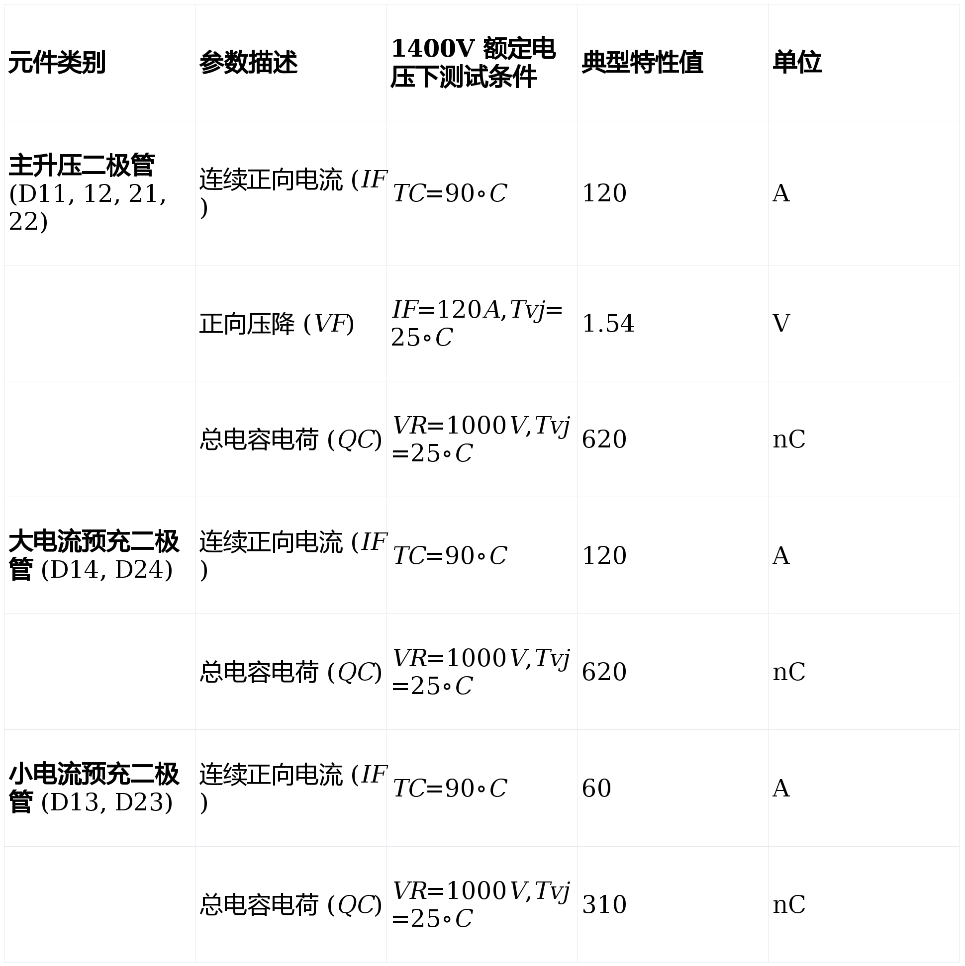 (表4:模块内置各级1400V SiC SBD二极管阵列核心参数,数据来源:)