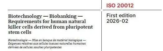 《Biotechnology — Biobanking — Requirements for human natural killer cells derived from pluripotent stem cells》