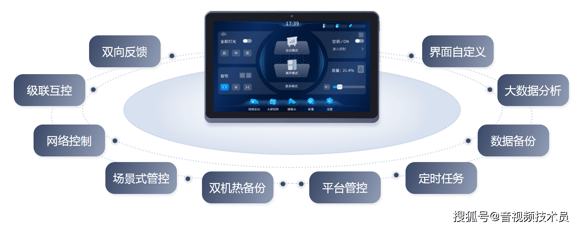 在实际应用中,OY-3000C完美适配多功能视频会议室的各类场景,彰显“得力干将”的实用价值。在远程视频会议中,设备可无缝对接宝利通等视频会议系统,通过RJ45接口建立稳定连接,实现会议开启、呼叫挂断、画面切换等全流程管控,同时协同控制lumens摄像机、铁三角会议话筒,一键调用预设拍摄位、调节话筒音量,确保会议音视频清晰同步。在培训、产品演示等场景中,可通过扩展槽接入HDMI、音频接口,实现课件、视频的灵活播放与切换,搭配环境监测模块,实时显示会议室温湿度、PM2.5等数据,自动调节空调、新风设备,营造舒适的会议环境。