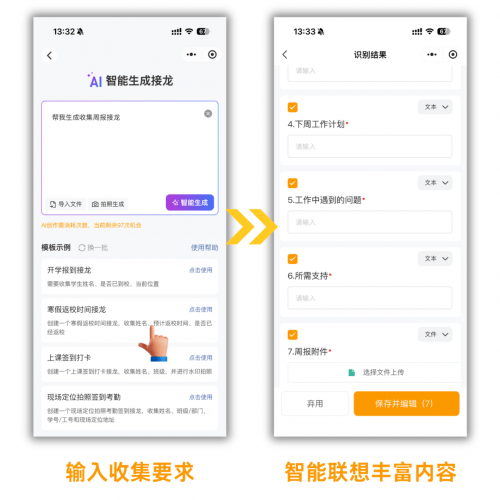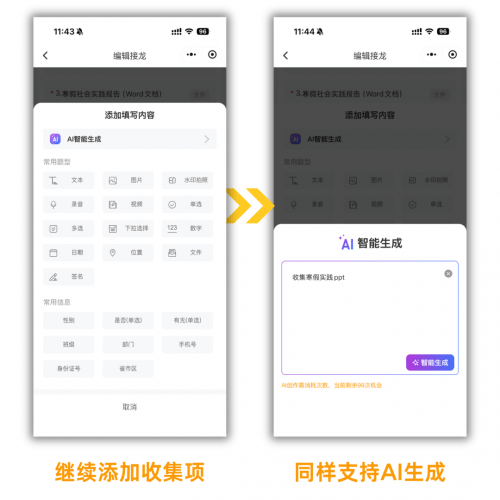 现在输入“社区书法班报名,需要姓名、电话、年龄”,AI自动生成收集接龙,还能自己组织语言。提交的数据直接导出表格,准确率100%,再也不用二次核对了。