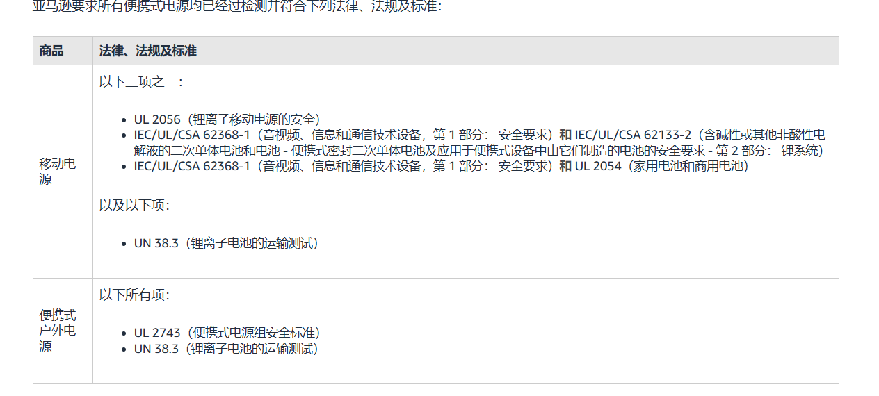 亚马逊针对移动电源合规要求: