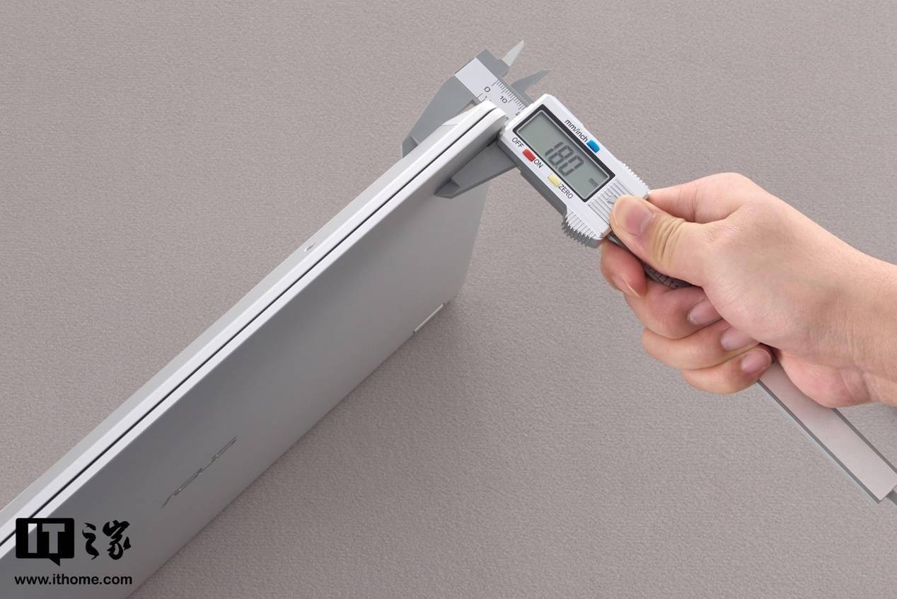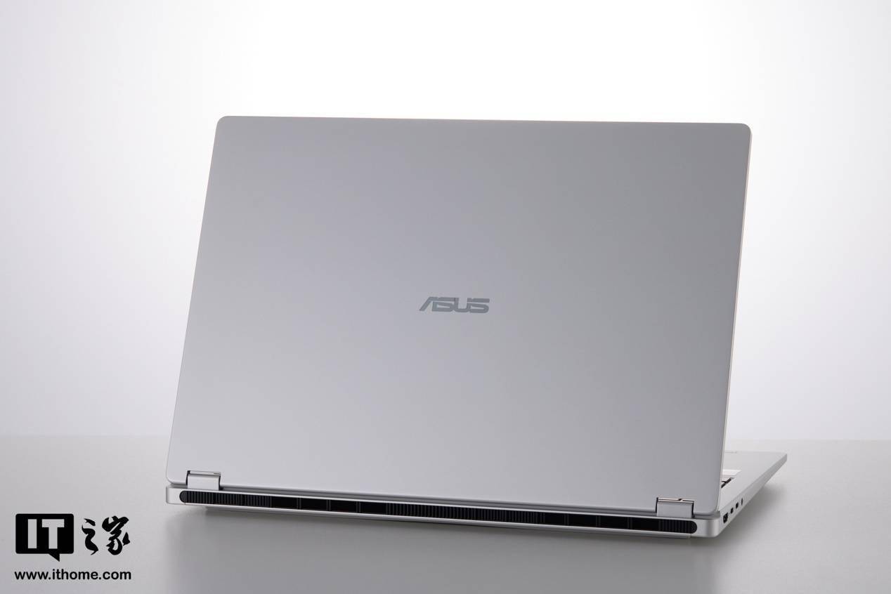 IT之家这次拿到的银色版本,CNC 一体成型的全金属机身,表面做了细腻的涂层处理,使得手感摸起来高级不冰手。华硕字母 Logo 移到了 A 面居中的位置,转轴也改为了完全悬浮的设计,好让机身背部拥有更大面积的散热出风口。