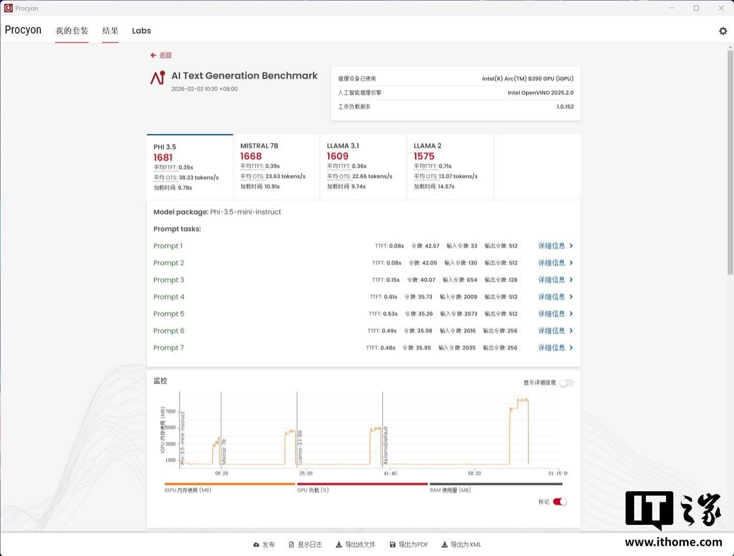 在 UL Procyon 的 AI 文字生成测试中: