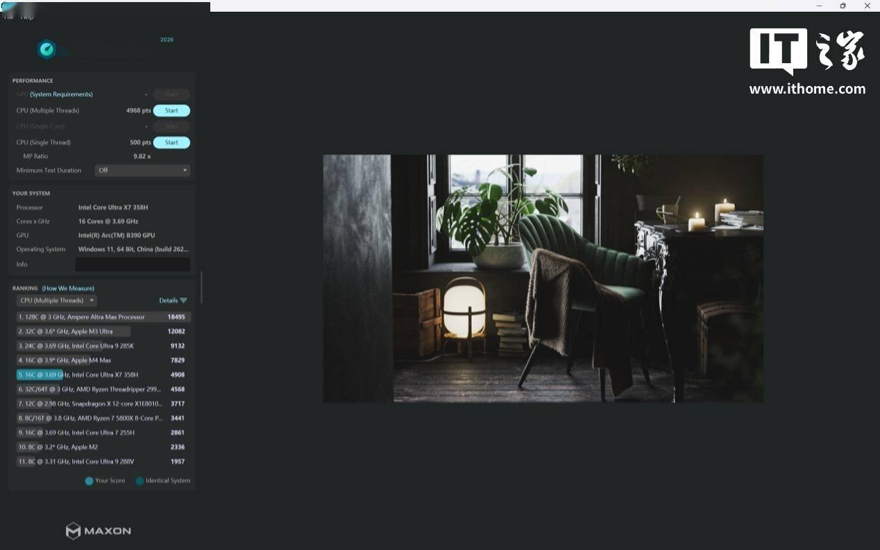- 酷睿 Ultra X7 处理器 358H 的 CPU 单线程分数为 500 分,多线程分数为 4968 分;