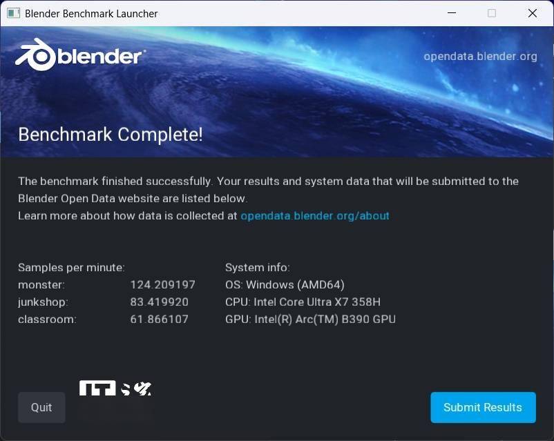 在 blender 4.5.0 基准测试中: