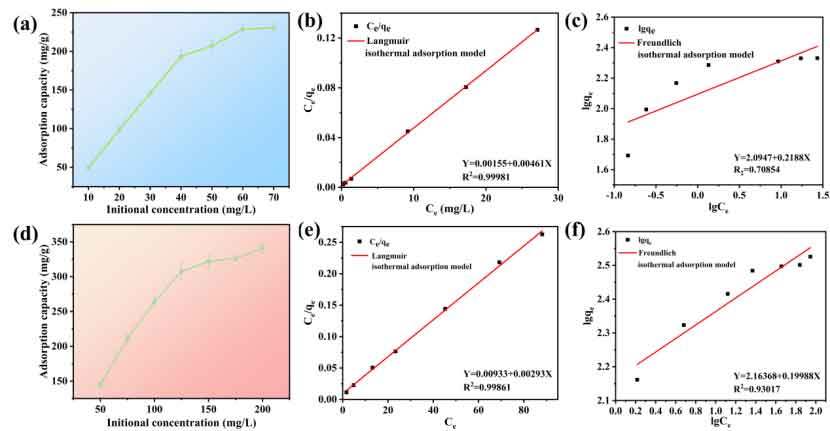 图6:不同初始浓度吸附容量与等温吸附模型分析。