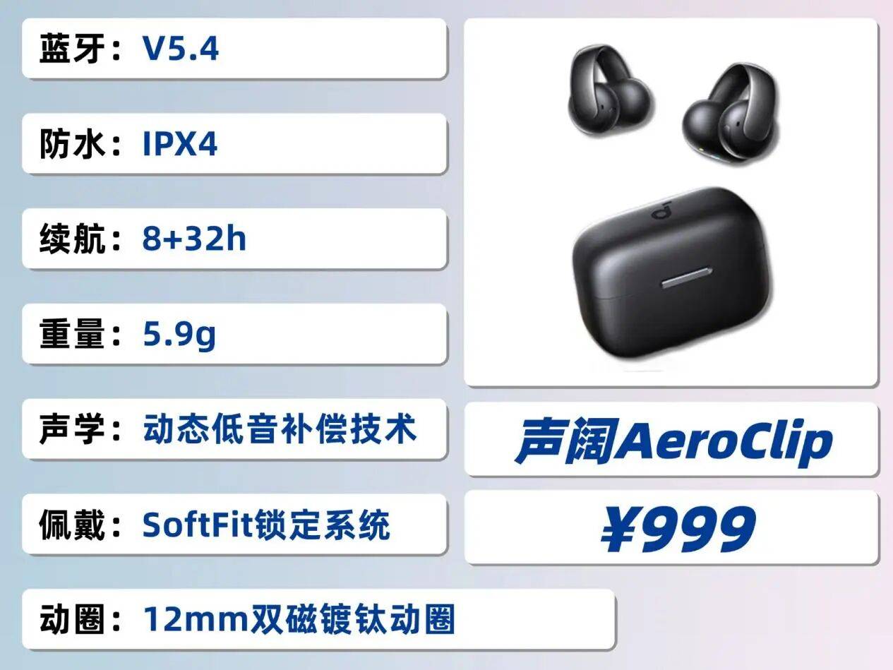 推荐理由:同价位里性价比最高的耳夹式蓝牙耳机!防漏音模式、12度弧面耳托!