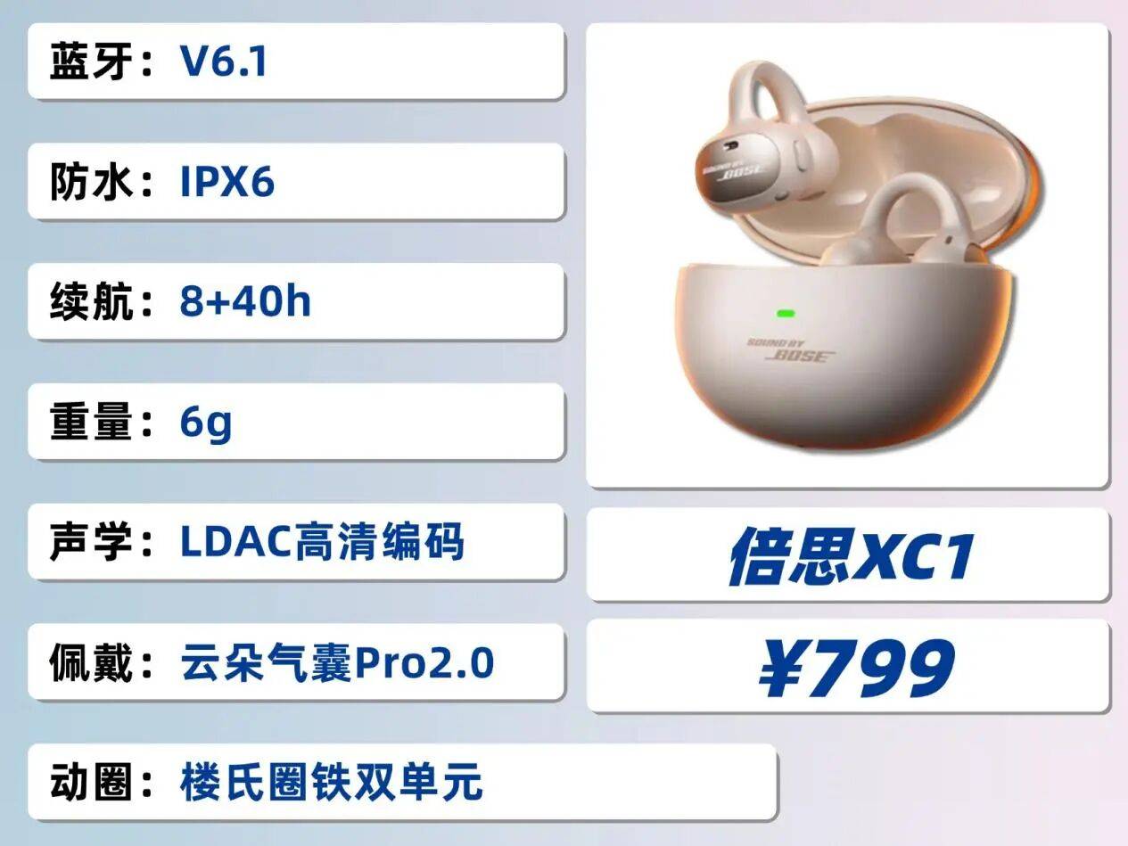推荐理由:耳夹式耳机公认天花板,适合同生态用户。