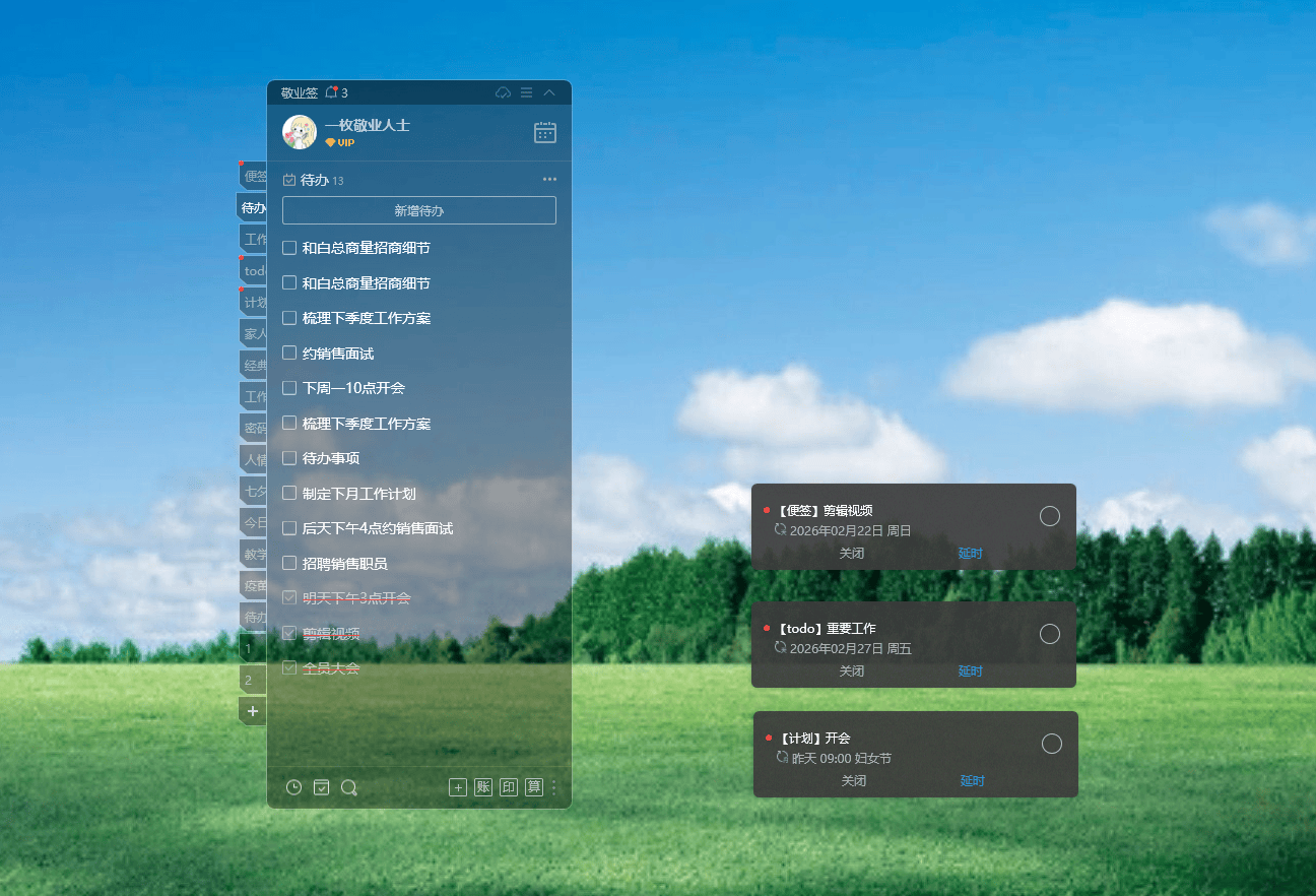 除了电脑端,敬业签还支持手机、平板等多设备同步使用,随时随地都能查看、编辑待办任务,跨设备办公毫无压力。集待办记录、一键打卡、智能提醒、分类管理于一体,功能实用、操作简单,完美契合上班族的任务管理需求,是一款闭眼入都不踩雷的高效办公软件。