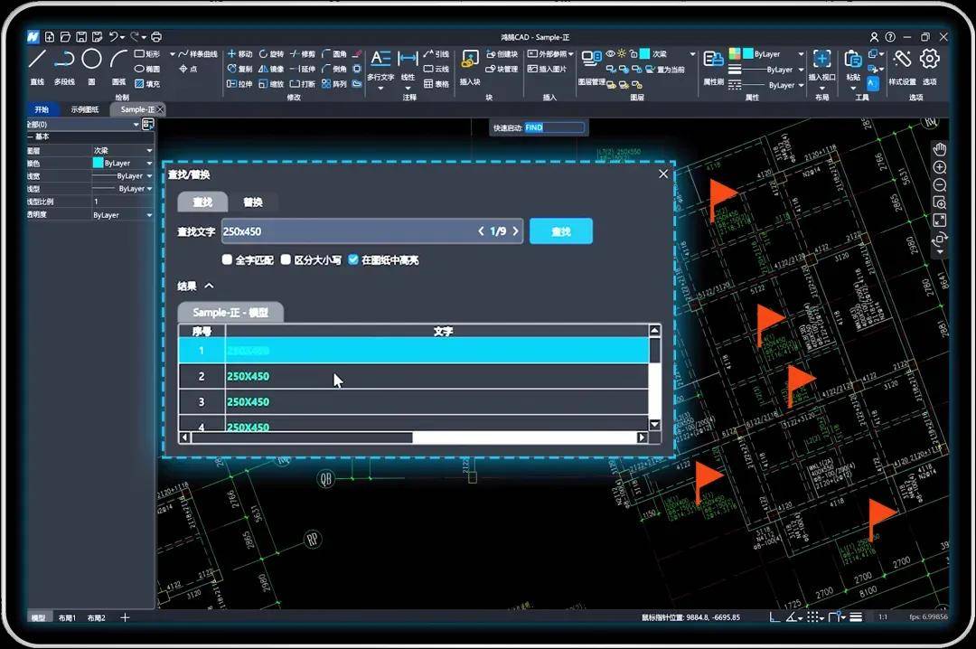 利用“小红旗标记”的查找替换功能,可以高亮显示全图所有关键标注或文字,一键定位,方便快速复核。