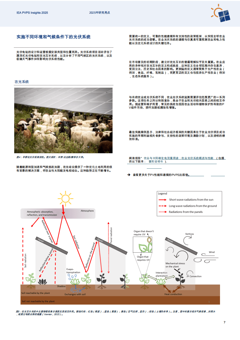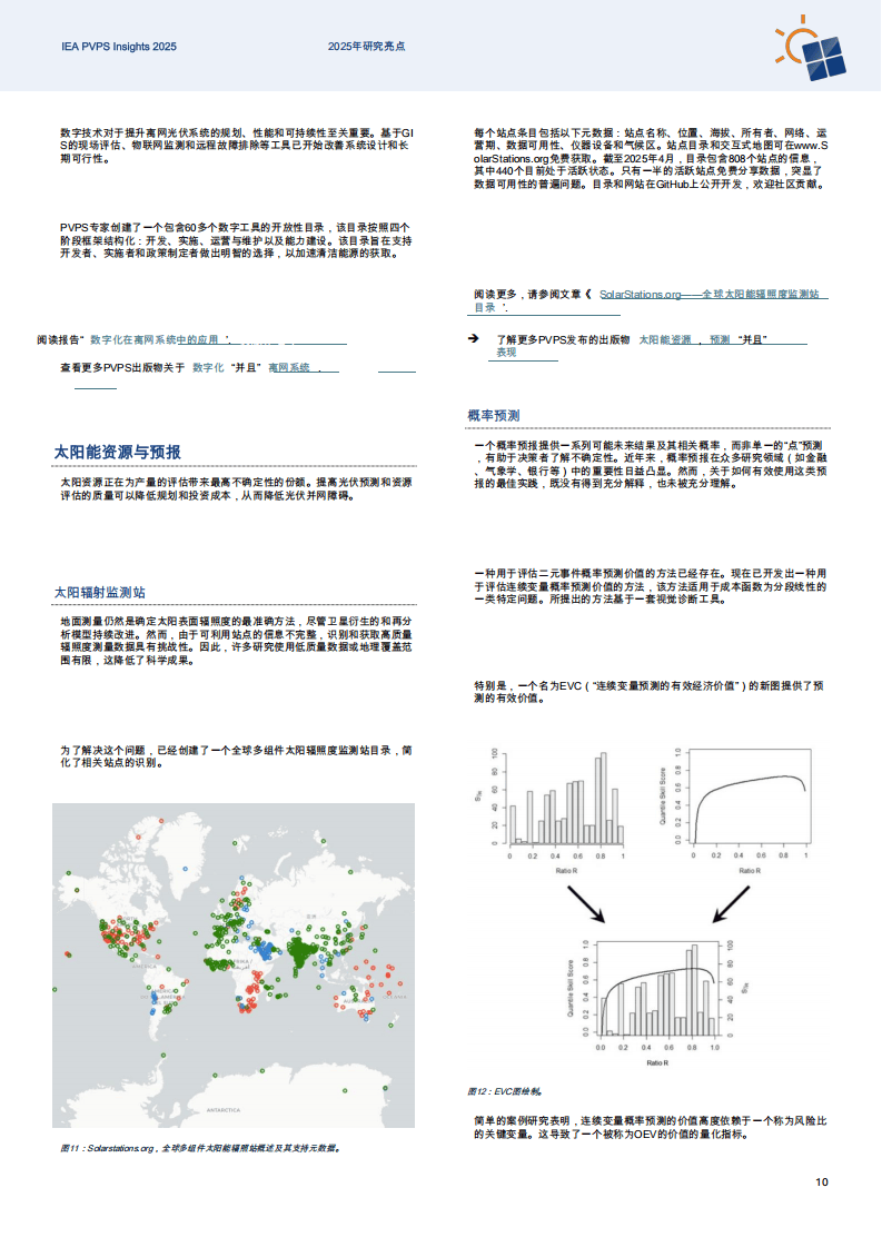 报告深入分析了不同场景下的光伏应用技术,农光系统需解决定义统一、性能建模和政策支持问题,浮动式光伏则面临产量模型、退化机制研究的挑战;极端天气对光伏系统的影响愈发显著,合理选址、设计及运维成为提升系统韧性的关键。离网光伏系统依托锂离子电池和60余个数字工具,为全球7.7亿无电人口提供电力解决方案,太阳能资源预报的精准化也通过全球辐照站目录、概率预测工具得到提升。