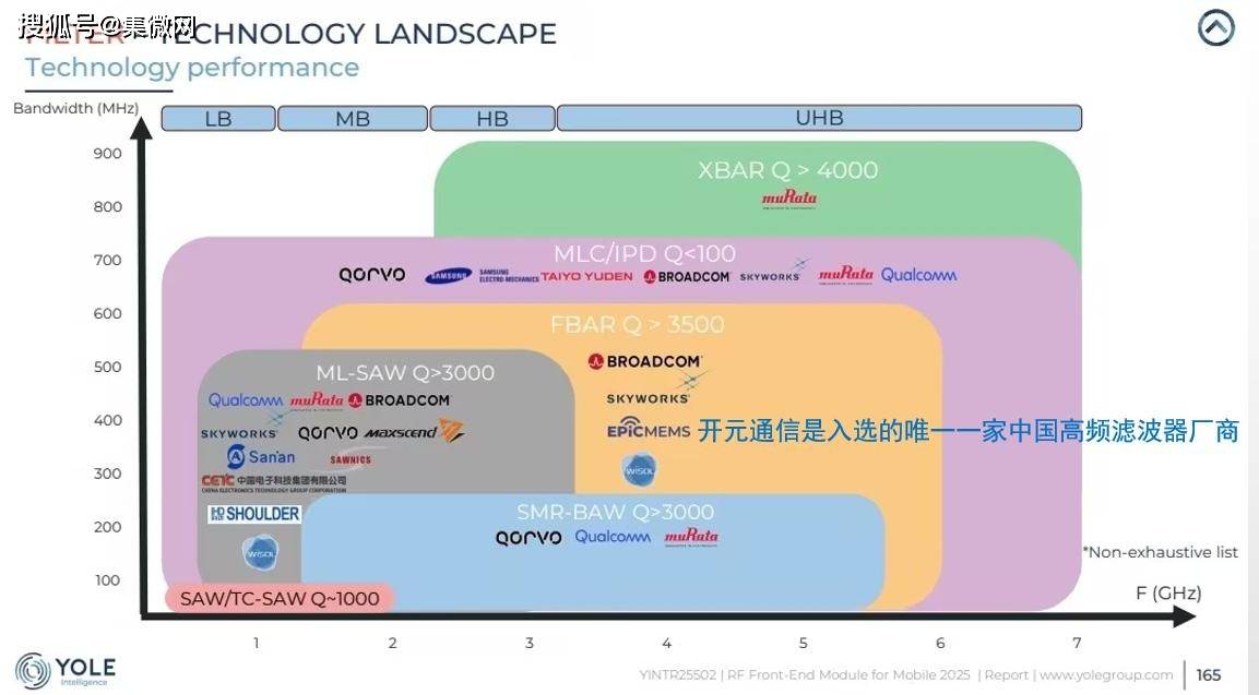 值得一提的是,在2025年底的全球射频行业报告中,市场研究机构Yole将开元通信列为全球主要滤波器供应商之一,使其成为入选的中国唯一一家BAW滤波器厂商。这标志着开元通信在BAW滤波器领域的技术实力与产业化能力已获得行业高度认可。