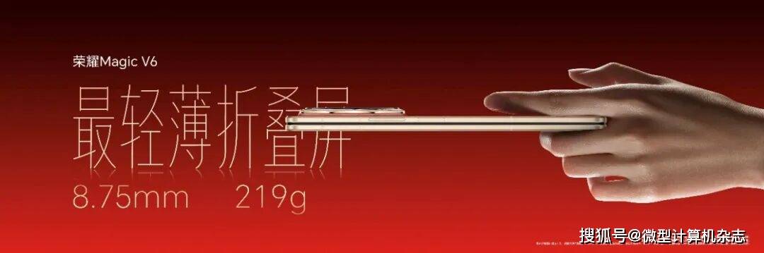 自荣耀Magic V2引领折叠屏进入“毫米时代”以来,轻薄就成为了荣耀折叠的基因。此次荣耀Magic V6折叠形态下薄至8.75毫米,轻至219g,展开状态下的厚度只有4.0毫米,依旧是“最轻薄折叠屏”代名词。