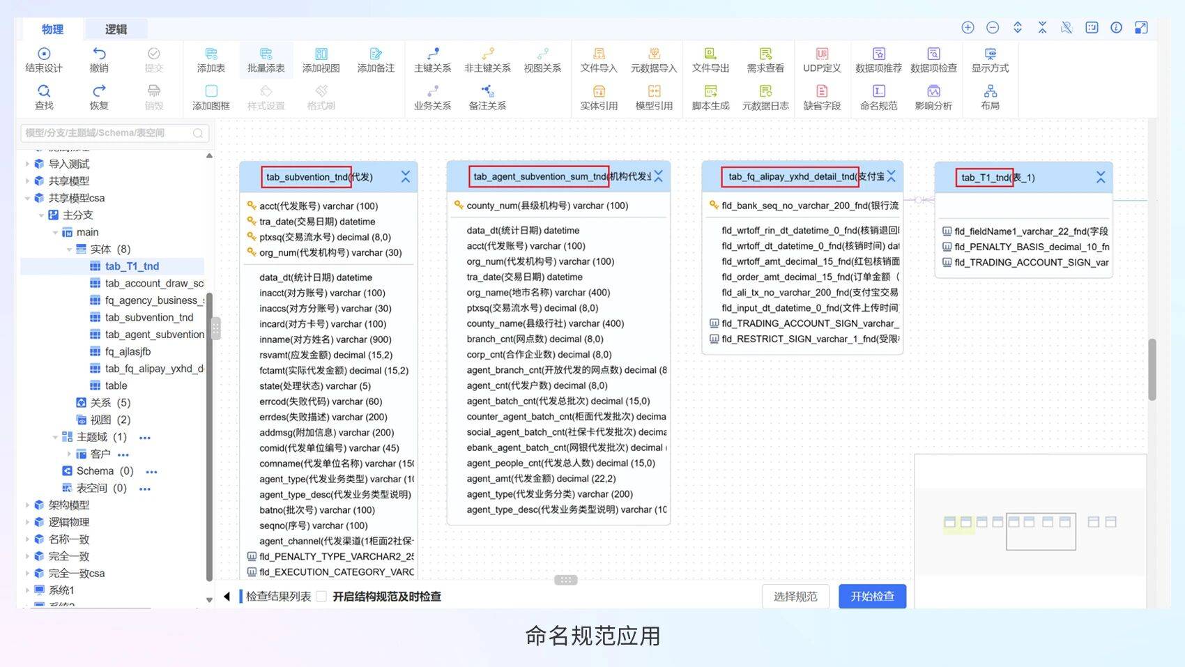 规范管控前置,协同更高效 No.4 多人协作建模,最怕命名混乱、冲突频发。源启数据建模平台从源头规范: 同名组件自动检测与重命名:覆盖实体引用、文件导入等场景,系统自动识别命名冲突,并按规则重命名,生成《同名组件变更清单》可一键导出,审计追溯有凭证。 自定义命名规范配置:团队可统一设置表、字段等命名格式,设计过程中自动应用规范,新创建组件自动合规,老模型迁移也能批量校正,可读性提升,维护成本下降。